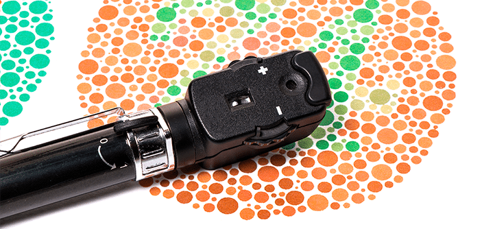 Com tabelas próprias para cada exame pesquisamos alterações na percepção de cores e contraste do paciente.